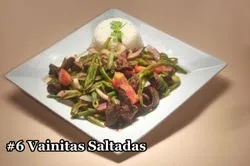 Lean beef sautéed with red onions, tomatoes, green onion, and cilantro served over Peruvian white canario beans and beside garlic steamed rice.